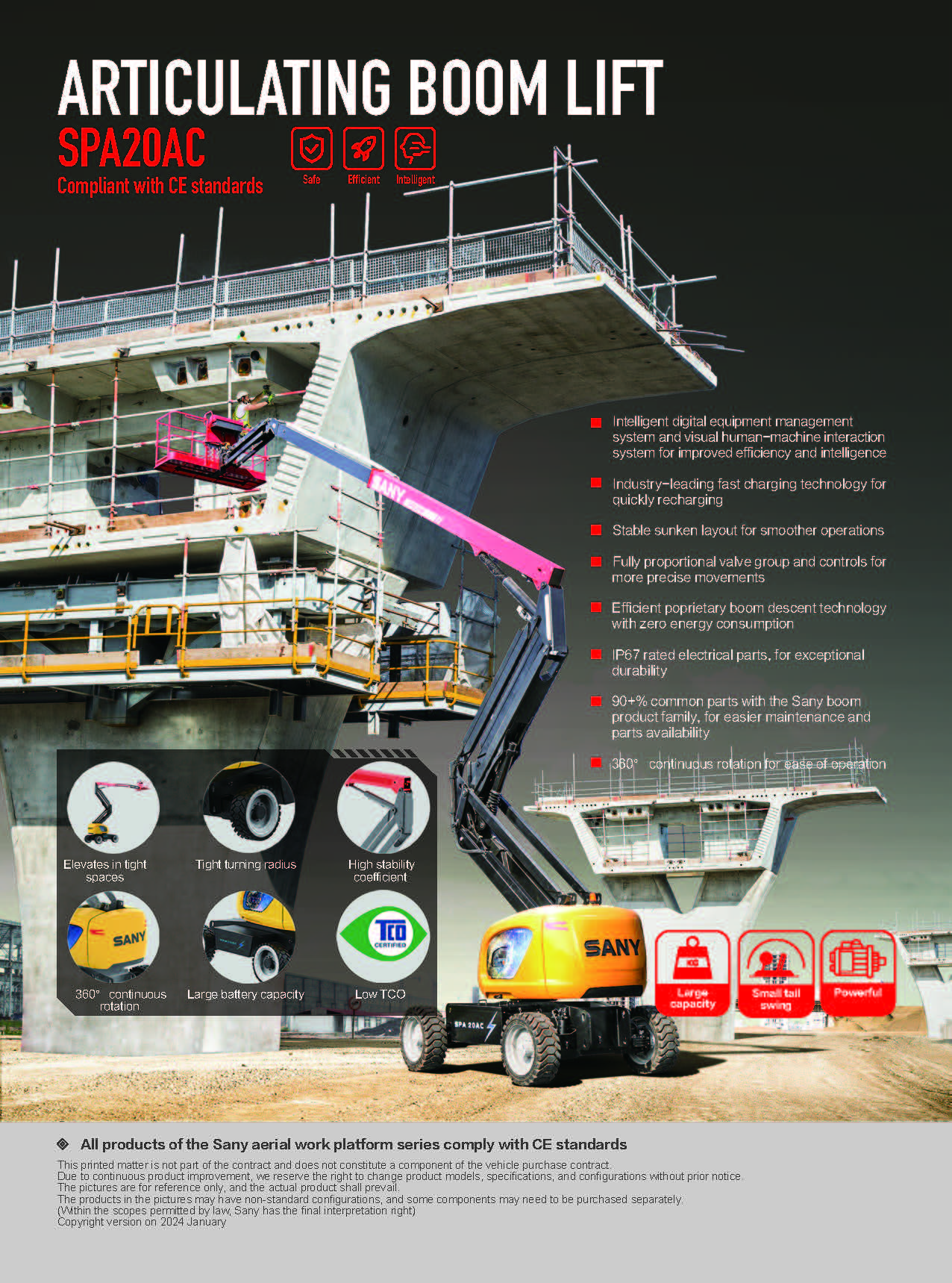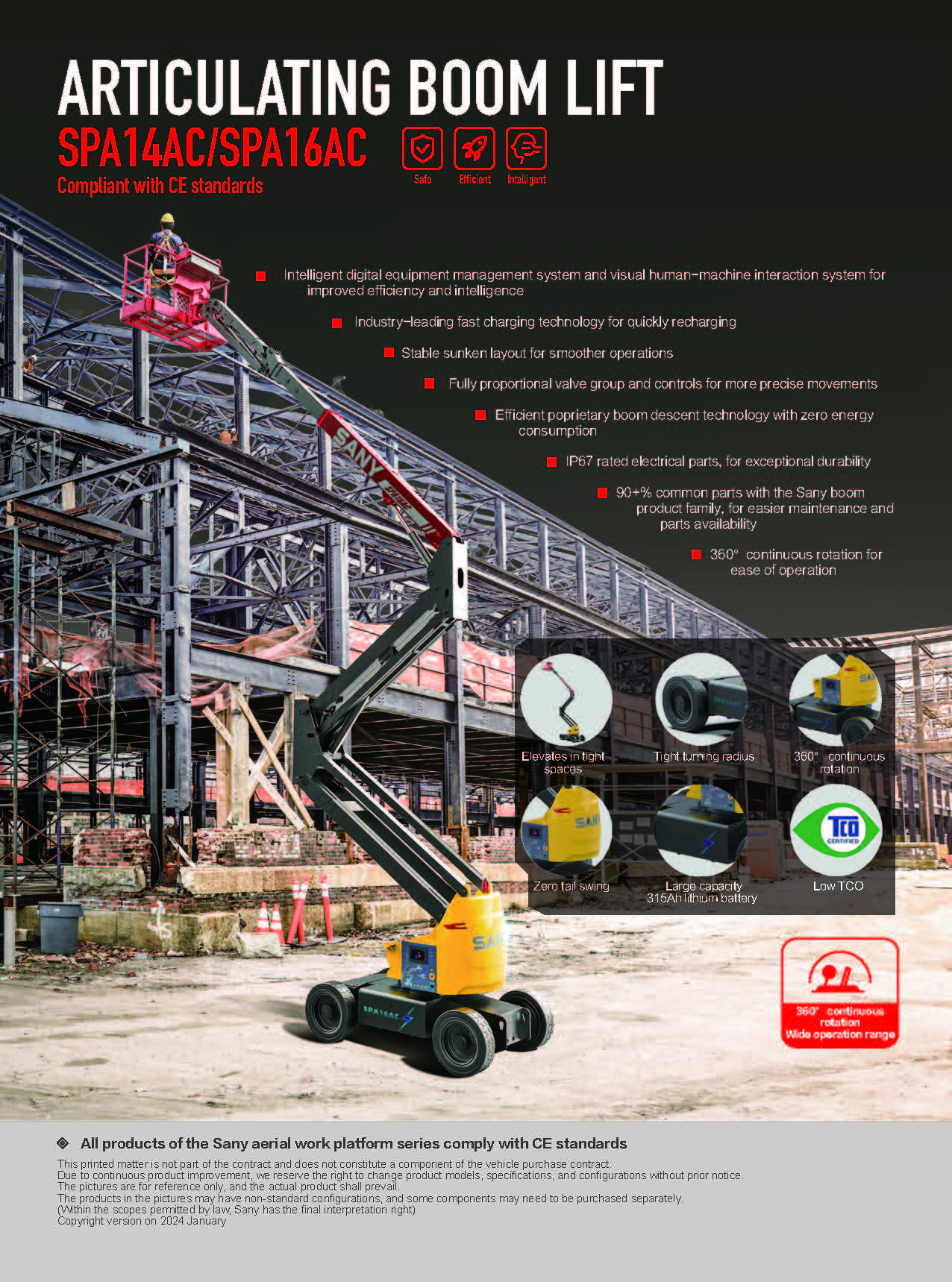 Articulating Boom liftstable sunken layout for smoother operations 360continuous turntables rotation 180 platform rotation |