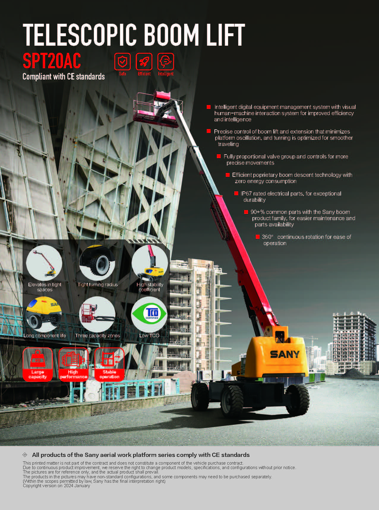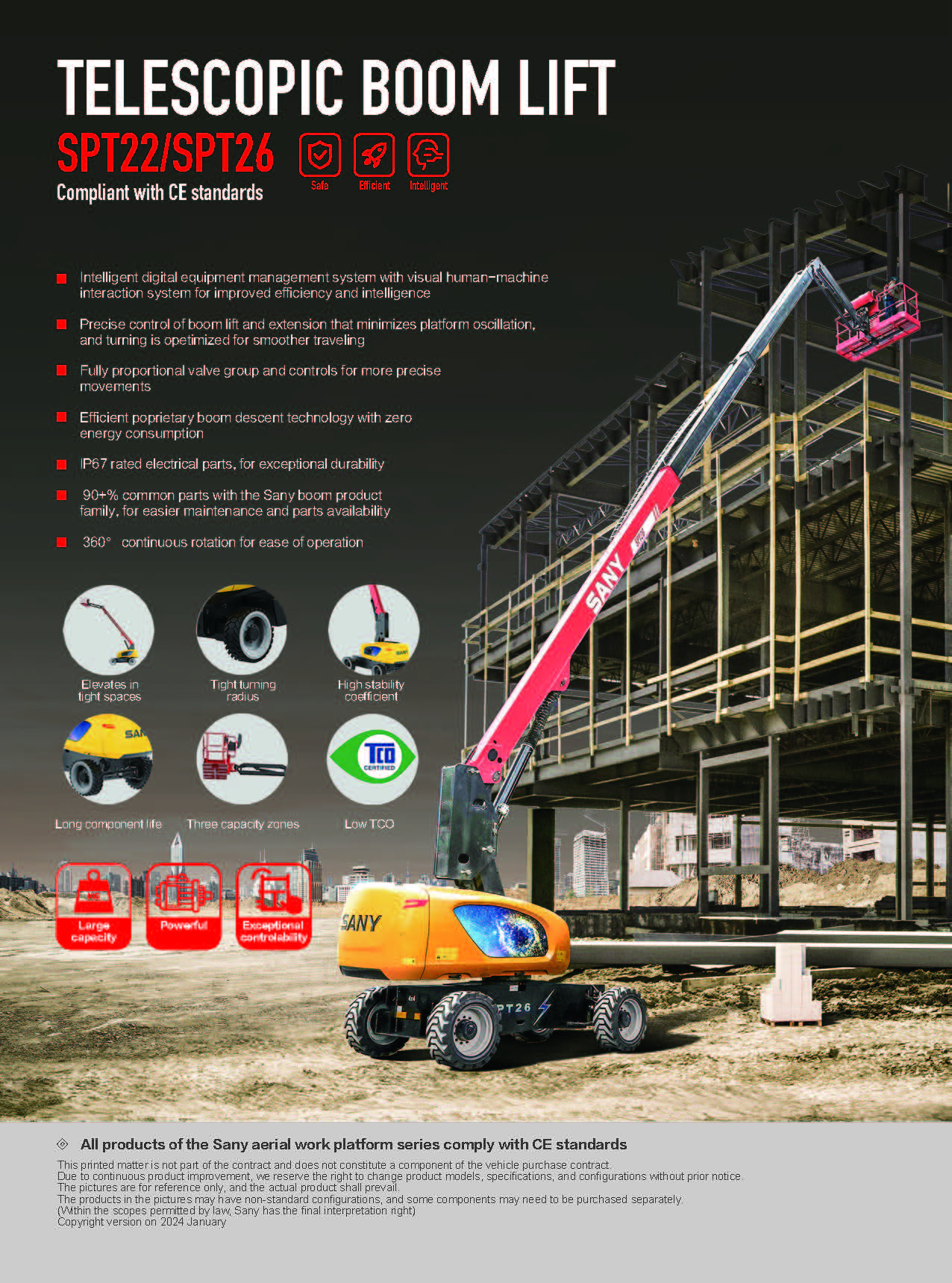 SPT22 elevates in tight spaces tight turning radius, maximum 2.4m inside and 5.5m outside 3 capacity zones